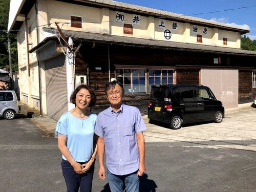 夏の休暇は、中国地方をぐるっと回っています。そして、初日のハイライトは、私が毎日つかっている、こちらのしょうゆの製造元である 井上醤油店を訪ねることでした。写真は、井上醤油店の井上裕義社長です。出雲大社に行くので、そうだ、出雲まで行くのだか…